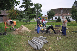Równocześnie panowie z Laskowic pracują nad przygotowaniem placu pod altankę,która już wkrótce stanie na placu zabaw przy Wiejskiej Świetlicy.