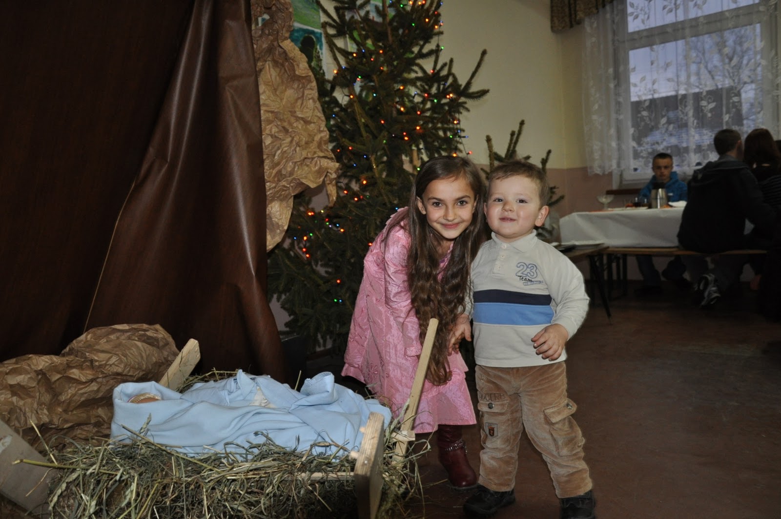 Po czym wszyscy zgromadzeni mieli przyjemność oglądnąć krótkie Jasełka , przeplatane kolędami w wykonaniu dzieci i młodzieży z Laskowic.