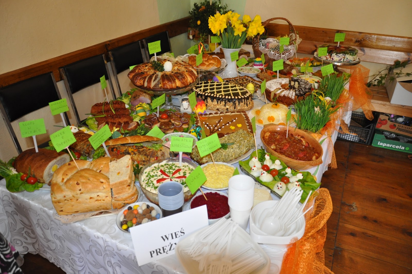 W Niedzielę palmową ,w Prężynce odbył się KONKURS IX STÓŁ WIELKANOCNY-TRADYCJE KULINARNE GMINY LUBRZA I GMIN PARTNERSKICH.Do konkursu przystąpiło dziewięć sołectw gminy Lubrza oraz goście z gminy partnerskiej z Republiki Czech.Komisja powołana przez organizatora to przedstawiciele Wyższej Szkoły Gastronomii i Hotelarstwa z Poznania oraz restauratorka z Opola.Zadaniem komisji była ocena najpiękniejszego stołu wielkanocnego oraz tradycyjnej, smacznej potrawy wielkanocnej.