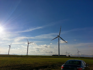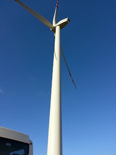Pomimo wielkiego wiatru odgłos obracających się skrzydeł nie był specjalnie uciążliwy.Widok krajobrazu w pobliżu farmy wiatrowej nie budził zastrzeżeń,wszystko wyglądało naturalnie. Wyjazd można uznać za ciekawy i udany.